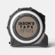 Madera falsa marrón y texto que dice "La cinta de Jason, mide dos veces, corta una vez".