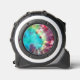 Una medida de cinta plateada, con una imagen, de un diseño de tinte = (tinte #1), = (turquesa, amarillo, morado oscuro, rojo).