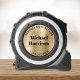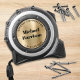 Medida de cinta moderna para su construcción, contratista, remodelación, diseño interior, inmueble o cualquier otro negocio con su nombre en gran tipografía audaz sobre un fondo metalizado de imitación dorada. Agregue dos líneas de texto, como el título de su negocio, el lema o la información de contacto.