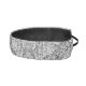 Banda de cabeza de grano bruto no deslizante con una hermosa impresión floral de encaje simulado en tonos gris plateado.