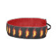 Una brillante pluma de pavo real hecha de fuego y llama sobre fondo negro.