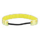 Esta increíble banda antideslizante de la cabeza muestra una imagen gráfica de un lindo abejorro amarillo con rayas negras, ojos, antenas y piernas. Tiene alas azul y blanco bonito. La abeja está sentada en medio de un girasol amarillo dorado. La flor tiene un tallo verde y tres hojas. El mensaje "feliz día de la abeja" aparece esparcido en las tres hojas.