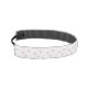 Patrón lindo con un gato gris, huellas de pata rosada y huesos de peces rosados y grises.