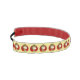 Cabeza con ilustracion de cabeza de un lindo y sonriente vestido de león con vestido de deporte rojo sosteniendo una pelota de fútbol, en círculo rojo, ilustrado por Radka Kavalcova