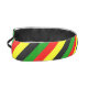 Banda afrocéntrica con banda de cabeza rayada de inspiración africana de color rojo, amarillo, negro y verde diagonal. También se puede usar para las celebraciones de Kwanzaa o para el obsequio de medias. Por celeste@khoncepts.com