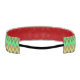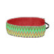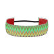 Una diadema con un patrón zigzag vibrante en tonos verdes, rojos, amarillos y azules. Tiene forro rojo y una correa elástica negra, lo que sugiere audacia y energía.