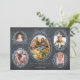 Celebre la temporada con estilo con esta tarjeta de fotografía de vacaciones hecha a mano, que incluye una foto principal con marco de cinta central rodeada de cuatro pequeñas fotos en encantadores marcos botánicos. El fondo negro de la pizarra de moda aporta calidez, mientras que el delicado patrón floral blanco del lado inverso sobre el verde oscuro añade un toque de elegancia. Personalice con sus momentos familiares favoritos y difunda la alegría de las vacaciones con un toque de corazón.