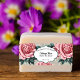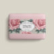 Esta banda de jabón presenta un fondo de rosa vintage y texto negro con espacio para sus ingredientes, nombre de negocio y sitio web.
