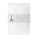 Personaliza tu papelería boda para los huéspedes con un conjunto de la banda de invitación a la boda Damask de la Torre Eiffel. El diseño de la banda Belly presenta la Torre Eiffel con un delicado fondo de encaje adamascado. Personaliza con los nombres del novio y la novia junto con la fecha del boda. También hay material de boda adicional disponible con este diseño.