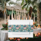 Banda de amarre Tropical Essence Invitation Belly, un hermoso conjunto de diseño con un patrón de inspiración tropical, perfecto para añadir un toque refinado y cohesivo a tus invitaciones nupciales. Ideal para bodas en el jardín y en la playa, esta banda de barril protege su suite de invitados con elegancia, mientras mejora su presentación con un sutil encanto tropical. Este diseño se crea mediante una imagen AI editada digitalmente.