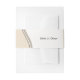 La elegante banda de invitación a la boda, en beige, forma parte de la suite de papelería boda New Beginning. El juego de papel permite intercambiar el color de relleno de almendras beige para que los colores coincidan con la paleta de color boda. Para obtener ayuda o consultas de diseño personalizadas, póngase en contacto con https://kbmd3signs.com/contact/.