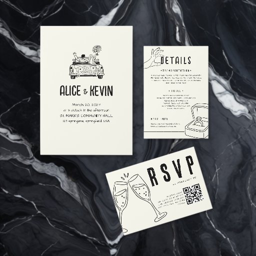 Cintas Para Invitaciones Black Hand Drawn Illustration Minimalist Wedding