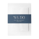 Banda de la invitación a la boda moderna con un diseño mínimo con "We Do" en tipografía audaz. Todos los elementos de diseño están en azul marino polvoriento y marfil y pueden cambiarse en la herramienta de edición de diseño. Estas bandas de invitación son elegantes y sencillas, ideales para una suite nupcial formal o informal.