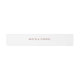 Estas minimalistas y elegantes bandas de la barriga de bodas muestran sus nombres en un texto rojo oscuro sobre un simple fondo blanco. Moda y diseño