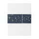 Cielo de medianoche azul marino con estrellas brillantes doradas y nombres de novias y novios para complementar nuestras invitaciones.