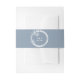 Boda blanca azul Invitación Belly Bandas con correa floral blanca dibujada a mano, opción para añadir iniciales/monograma de pareja y fecha en el centro.