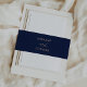 Añada un toque final a sus envíos por correo boda con estas bandas de invitación a la boda modernas y elegantes, con tipografía de oro sobre un rico fondo marino.