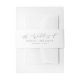 Esta delicada caligrafía plateada banda de invitación a la boda es perfecta para un boda moderno. El romántico diseño minimalista presenta una bonita y elegante tipografía de color gris plateado sobre un fondo blanco con un aspecto limpio y sencillo. Personalice estas bandas de papel con los nombres de la novia y el novio, y la fecha del boda.