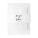 Una banda de invitación es un ajuste decorativo que reúne los diversos componentes de un boda o de un conjunto de invitados a eventos, como la tarjeta de invitación, la tarjeta RSVP y los insertos de información adicionales. Las bandas de la barriga, hechas de diversos materiales, como papel, tela o cinta, aportan un toque de elegancia y cohesión a la presentación general del paquete de invitación. A continuación se presentan algunas características clave y aspectos de las bandas de invitación al vientre: