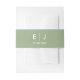 Elegantes bandas clásicas monogramadas de vientre en verde sabio y blanco con sus iniciales y fecha boda en texto minimalista tradicional.