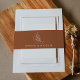 Diseñadas para coincidir con nuestras invitaciones nupciales de la Luna Botánica Elegante y las Estrellas, estas bandas de invitación son la manera perfecta de completar su suite boda. Esta banda de invitaciones boho presenta un delicado ilustracion de arte de la línea crema de una luna, adornado con estrellas y follaje botánico, todo ello con un fondo de terracota. Personaliza la banda de la barriga de terracota con tus nombres.