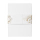 Envuelva sus invitaciones de boda vintage country en una elegante rusticidad con nuestra exquisita banda para el vientre de la invitación. Adornada con encaje floral dorado boho gilded, es el toque final perfecto para establecer el tono para su encantadora celebración en medio de la belleza de la naturaleza.