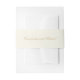 Esta banda de vientre de invitación de boda tiene un color de texto dorado para los nombres de la novia y el novio sobre un fondo blanco apagado.