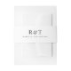 Un moderno monograma con iniciales de parejas y nombres debajo son las características de esta banda de invitación a la boda. Coordine la invitación adicional y el día de los artículos con este diseño visitando la colección de Bodas de overlay modernos de Stacey Meacham.