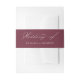 Banda del vientre de la invitación a la boda de Borgoña con elegante caligrafía y los nombres de la novia y el novio. Diseño minimalista sencillo y moderno que se adapta a los colores bodas. En mi colección de Bodas Colors se pueden encontrar invitaciones de coordinación, papelería y decoración del día del evento. Si desea colores diferentes o plantillas adicionales para productos coincidentes, por favor envíeme un mensaje para añadirlos.