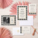 Inspirado por los atemporales suelos con motivos de tablero de ajedrez que han aparecido en la arquitectura desde el primer siglo, el motivo del cheque en blanco y negro ha aparecido una y otra vez a lo largo de los años. Girado cuarenta y cinco grados este motivo se siente de lujo y moda hacia adelante cuando se acompaña de un texto reducido. Este patrón negro y marfil tiene un estilo Art Déco con un ambiente sencillo e informal que marca la pauta para un boda que celebra la unión de una pareja moderna y un duograma de dos letras con una banda artística.