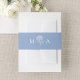 Complete your wedding invitations with this elegant hydrangea monogram belly band, designed to bring a polished and cohesive look to your suite. The design features a hand-drawn hydrangea in white at the center, with the couple’s monogram initials displayed on each side in matching white lettering against a soft blue background. The clean, balanced layout keeps your invitation ensemble neatly wrapped while adding a refined decorative detail. Ideal for garden weddings, spring weddings, and classic wedding settings, this wedding invitation belly band offers a simple and timeless finishing touch.