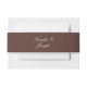 A very elegant and unique chocolate and cream classy background and old money wedding belly band. That matches the whole retro old money script wedding suite theme vibe. As you see it has a luxury cream old money style bride and groom's names standing in the middle on chocolate background.