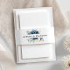 Boda floral azul turquesa Banda del vientre de la invitación con elegante ramo de azul marino, azul real , blanco , oro, marfil del champán, rosa de color rubor , brotes de flores de ranunculus y hojas de eucalipto verde salado y elegante ramo de acuarela. Comuníquese conmigo para obtener ayuda sobre la personalización o si necesita cualquier otro producto con este diseño.