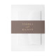 Elevate your wedding invitations with this elegant brown belly band adorned with beautiful faux gold lettering. Its minimalist design elegantly showcases the couple’s names in a sophisticated serif and script combination creating a timeless yet modern look. This band is perfect for holding invitation suites together while adding a polished luxurious touch to your wedding stationery.