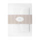 Elegant wedding invitation belly band featuring classic mocha brown French stripes and a delicate lace doily-inspired oval crest for a refined vintage look. Designed in a timeless neutral ivory and mocha palette, this wrap adds a polished finishing touch to your wedding invitation suite—perfect for holding invitation cards, RSVP cards, and details inserts together. Ideal for neutral wedding themes, farmhouse elegant celebrations, and classic romantic wedding stationery collections.