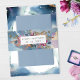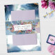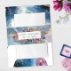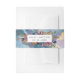 Hermosa y única banda de invitación con capacidad para personalizar con dos líneas de texto cualquiera como quieras (nombre(s) y evento, nombre(s) y fecha del evento, Iniciales y fecha del evento...) Diseño con magnífico fondo de acuarela celeste en tonos azules, navales, verde azulados, turquesa, violeta, fucsia y dorados con estrellas delicadas. Marco elegante con disposición floral detrás en los mismos tonos de joyas que el fondo acuático. Parte de nuestra colección "Mystic Garden Celestial" con una variedad de productos de coordinación disponibles.