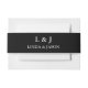 Añada un toque de sofisticación a sus invitaciones nupciales con la elegante banda Belly de Invitación a la Caligrafía Personalizada Negra. Esta elegante banda, con una caligrafía refinada sobre un fondo negro, envuelve con gusto su suite de invitados, manteniendo todo en su sitio mientras añade un elegante toque final. Personalizado para su día especial, mejora la presentación general y marca el tono para un boda elegante y moderno. Da una primera impresión duradera con este lujo de detalles.
