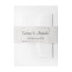 Banda de la vientre con un patrón de damasco blanco y gris muy elegante, con detalles personalizados del nombre y fecha del boda de la novia y del novio rodeados de un bonito borde metálico plateado. Esta elegante banda gris y plateada forma parte de una colección más grande que incluye invitaciones, guardar fechas, sobre y más que se puede ver aquí: https://www.zazzle.com/collections/silver_and_gray_swirls_wedding-119646083258166024