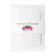 Estas bellas bandas de la barriga son perfectas para llevar tu invitación y recintos. Cuentan con un bonito diseño floral tropical con un ramo de flores de hibisco, un pájaro del paraíso y una exuberante vegetación en tonos rosa cálido, magenta, fucsia, amarillo y verde jade. Los nombres de la pareja están escritos con lujosas letras de guión dorado. Excelente manera de añadir un poco de estilo y clase a tu conjunto de invitados de boda.