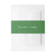 Esta banda de invitación a la boda muestra los nombres de la novia y el novio en un elegante texto caligráfico escrito a mano. El fondo es verde y se puede cambiar a cualquier color eligiendo personalizar.