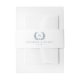 Por favor revise nuestras elegantes bandas de invitación a la boda, con una impresionante corona floral azul y gris polvorienta con el apellido inicial. Personalice estas bandas con los nombres de la novia y el novio para infundir un toque de individualidad en su colección de papel de boda.
