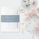 Usa estas elegantes bandas para complementar tus polvorientas invitaciones nupciales azules. Su sencillez significa que se pueden utilizar para coordinarse con la mayoría de los tonos azules o grises. Añada los nombres de la novia y del novio tal y como se indica en nuestras plantillas. Nuestro diseñador ha seleccionado un tipo de letra boda moderno en blanco. El tipo de letra puede cambiarse a complemento o coincidir con las invitaciones de boda.