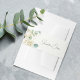 Elegante Invitación de nombre de escritura de vegetación dorada de eucalipto de magnolia blanca en acuarela con bandas para el vientre.