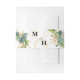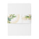 Resuma las invitaciones de boda con esta elegante banda de la barriga que representa la belleza eterna con esferas doradas y un diseño botánico de hojas verdes. Actualice fácilmente las iniciales de una presentación simple de diseño de monograma.