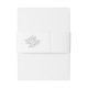 Elegant faux embossed white rose wedding belly band featuring a delicate 3D-style floral wreath on the front and a coordinating embossed rose motif on the back (printed faux emboss effect, not real embossing). Designed to beautifully wrap your invitation suite with a refined, timeless look.