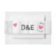 Bandas de la viga del boda del tarro de albañil de madera rústica. Diseño vintage con líneas de grano de madera gris y corazones rosa fucsia. Forma parte de un bonito conjunto romántico de modas de campo. Sobres coincidentes y otros artículos de papelería de moda. Suministros de matrimonio personalizado con monograma de nombre para pareja de novios.