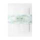 Distingue sus invitaciones con esta elegante banda de la barriga con delicados antecedentes acuáticos y elegante marco moderno verde claro con las iniciales y la fecha de la pareja. Monograma de recubrimiento de marco dorado. El fondo acuático combina el turquesa, el agua, el azul polvoriento, el verde verde azulado y el verde suave. Parte de nuestra colección "Airy Blue and Green Watercolor" con una variedad de productos de coordinación disponibles.