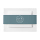 Firmas simples y elegantes Banda de Belly de invitación a boda azul y blanco verde azulado que muestra sus iniciales en una letra de guión en azul. Forma parte de nuestra suite boda "flores Verde azuladas y azul acuático". Puede cambiar el color de fondo para satisfacer sus necesidades.