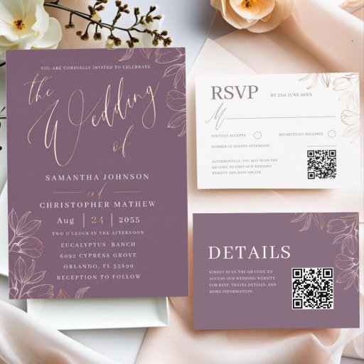 Elevate your wedding suite with this elegant belly band featuring a dusty plum background with blush and real rose gold accents. Designed to neatly wrap your invitations, this band showcases a delicate botanical monogram for a refined, cohesive finish. Perfect for adding a touch of luxury and organization, it brings together your stationery with a polished, romantic look ideal for modern, sophisticated weddings.