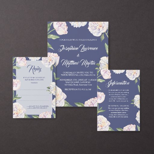 Cintas Para Invitaciones Monograma blanco Boda azul floral